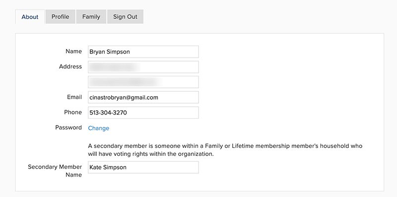 Use the form on this page to update your information including your address, email address, phone number and family member names.