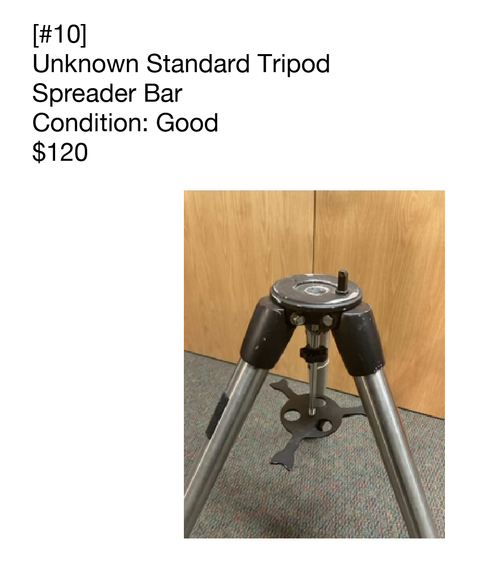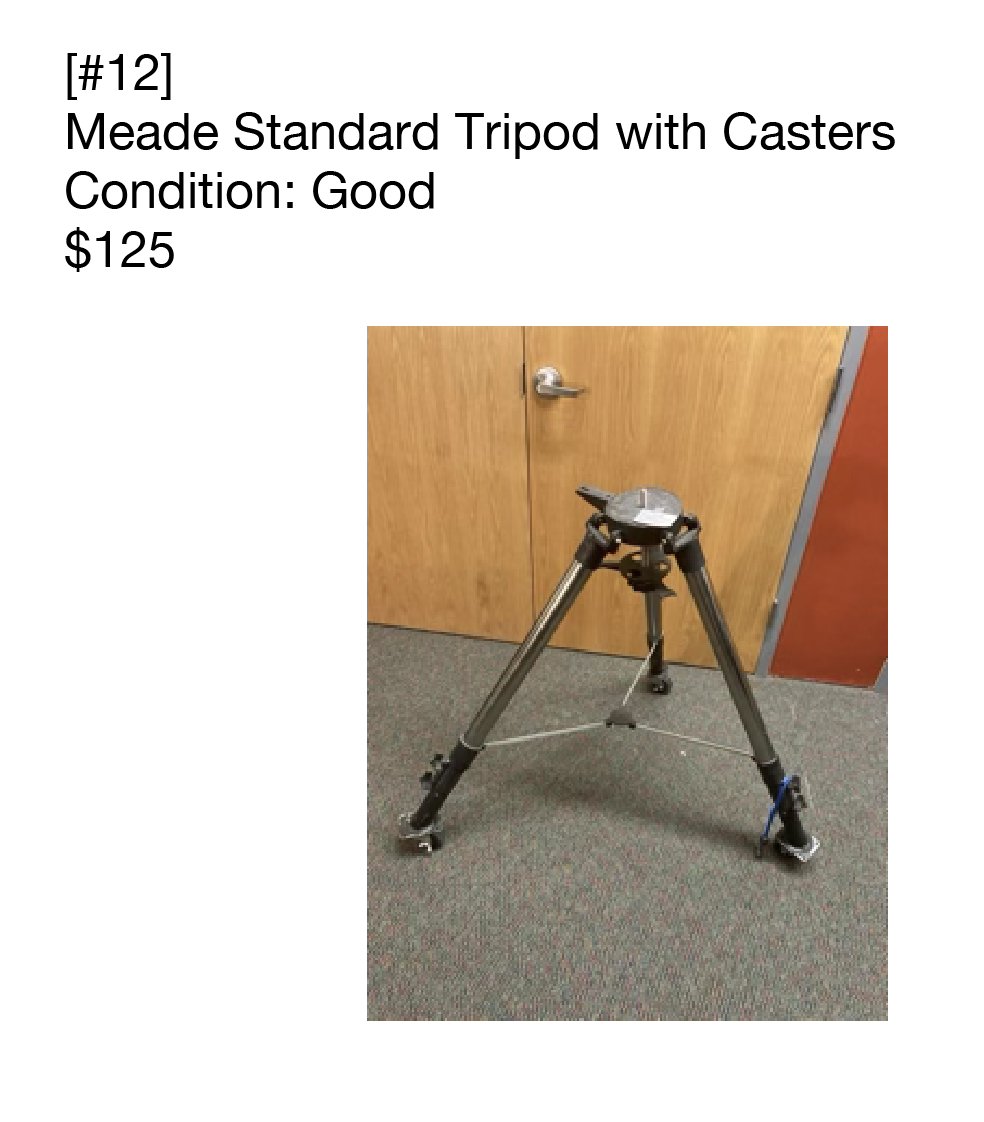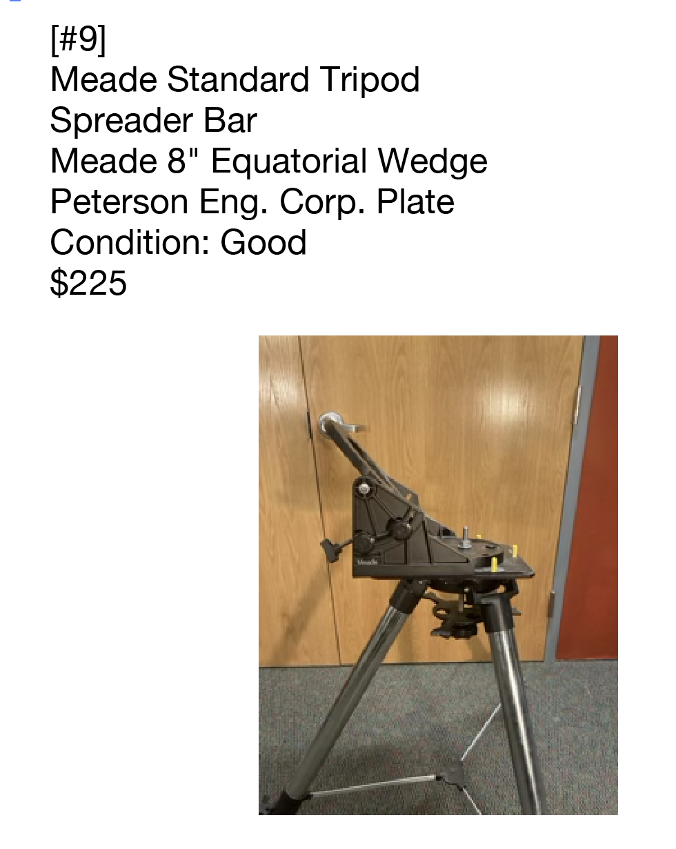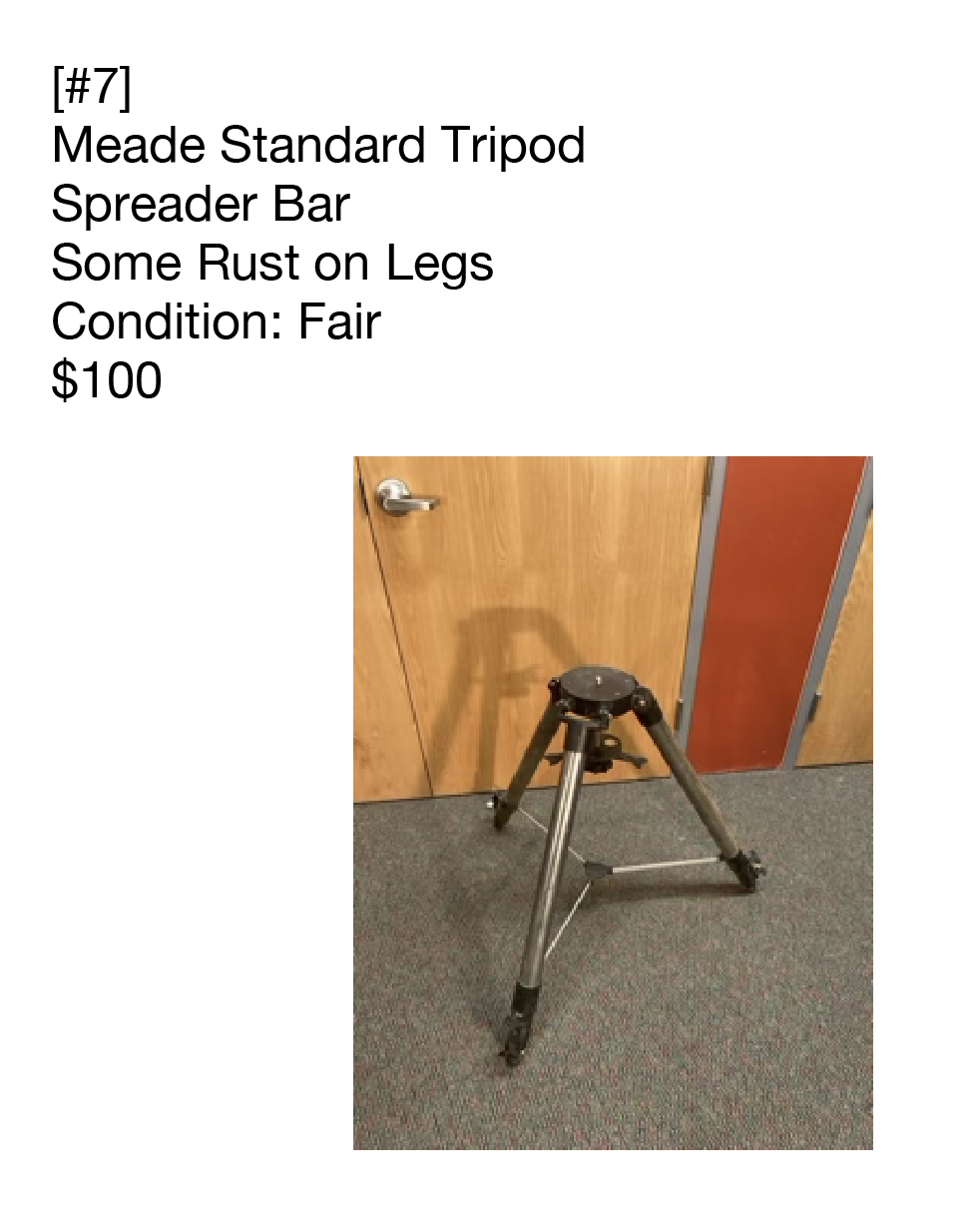Send a list of your items to swapmeet@cinastro.org and we will add it to this page before the event date.